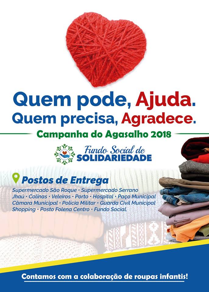 Todos os anos, os Fundos Sociais de Solidariedade dos municípios paulistas e o estadual arrecadam agasalhos p[ara doar a quem precisa e aquecê-los durante o inverno - uma boa ação!