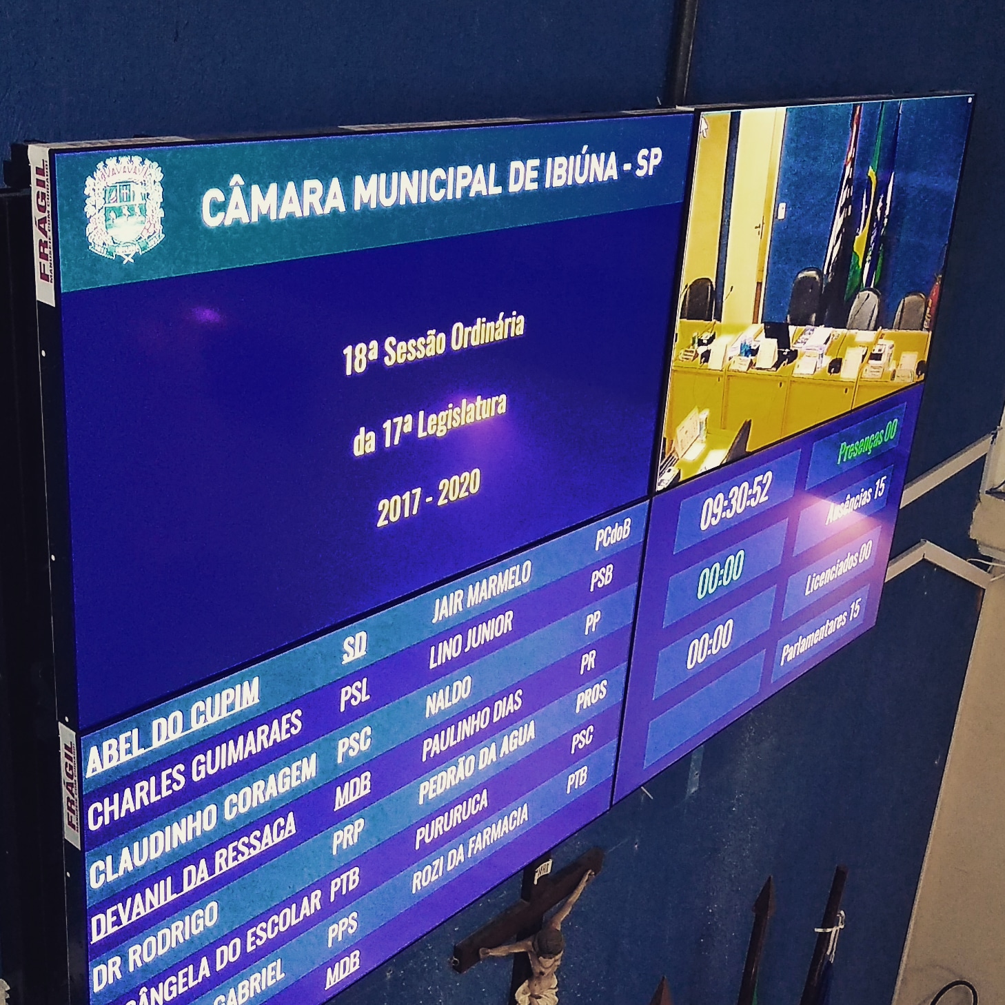Painel eletrônico acionado para o início da sessão.